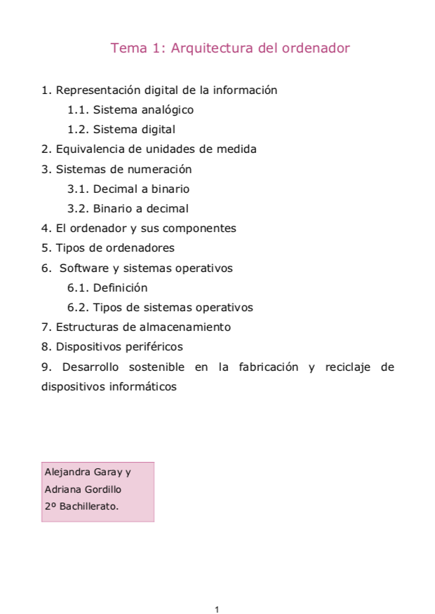 Nuestra primera tarea del curso consistió en redactar, a partir de un índice que nos proporcionaron, un tema a cerca de la arquitectura del ordenador.